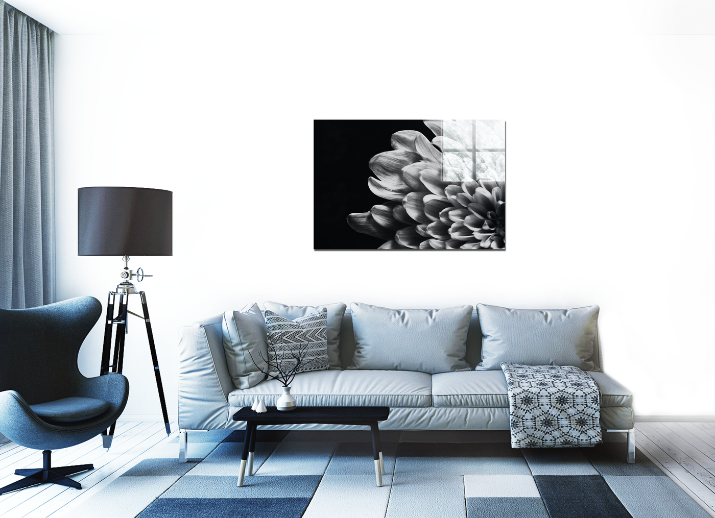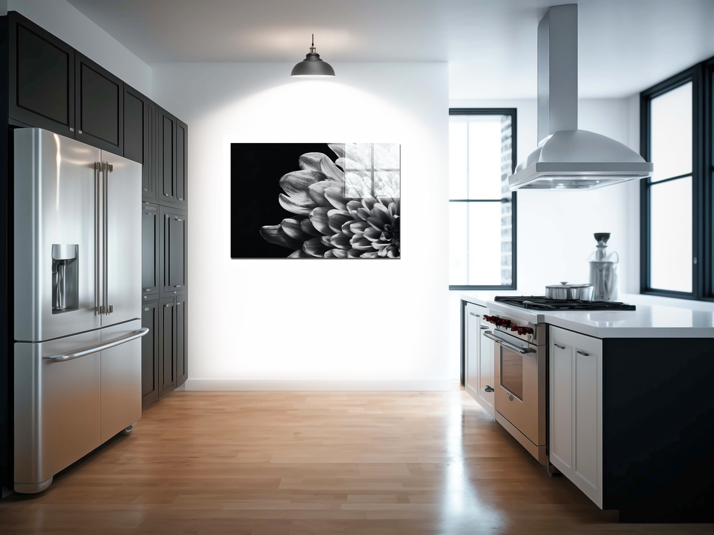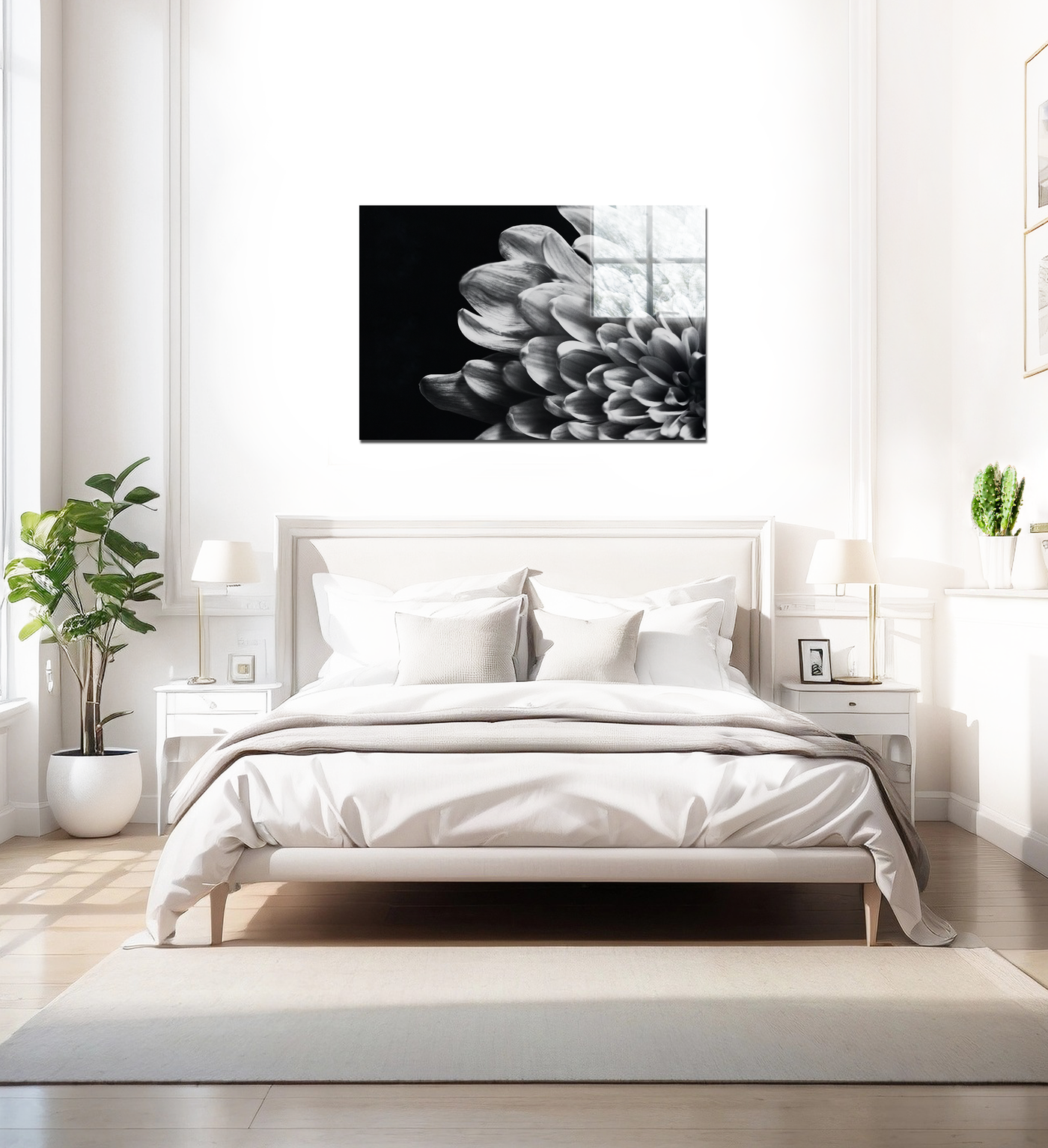 Produced as an Acrylic print, this piece takes on a new dimension of brilliance. The glossy surface enhances the contrast between the luminous flower and the deep black background, creating an almost three-dimensional effect. The Acrylic medium intensifies the silver hues, making the centre pop and lending the white petals an almost pearlescent sheen. This eye-catching print would make a bold statement in any contemporary interior, bringing a touch of natural artistry to your walls.