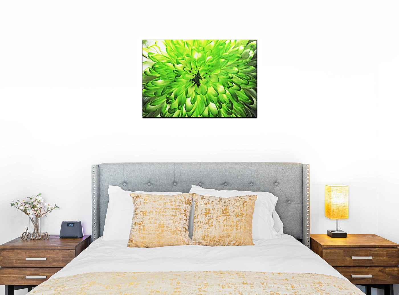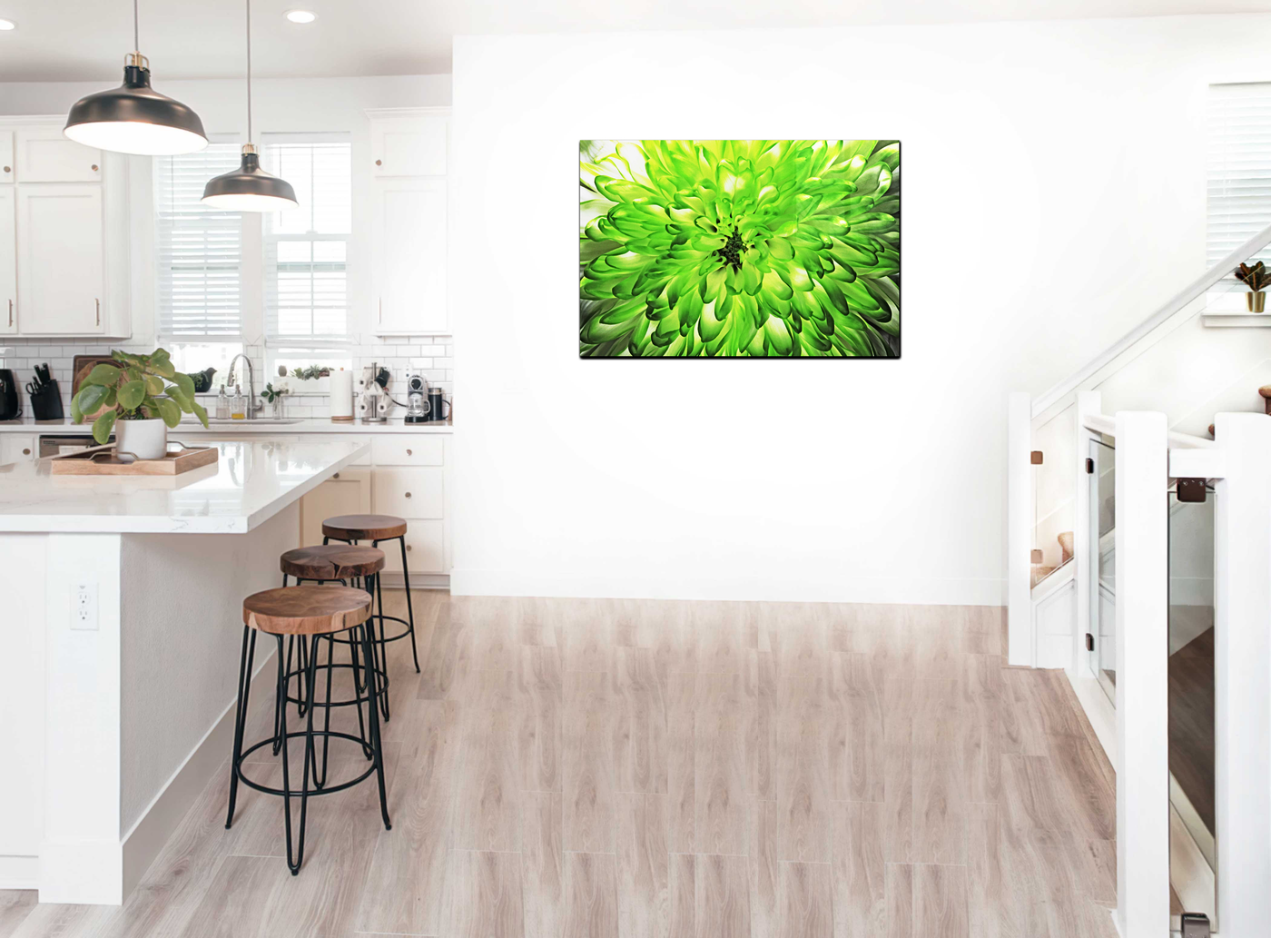 Experience the vibrant energy of nature with this stunning Acrylic print from 101 Canvas Prints. Our skilled photographers have masterfully captured the essence of a green chrysanthemum in full bloom, presenting a breathtaking macro view that transforms the familiar into something extraordinary. This image offers a unique perspective, immersing the viewer in a sea of green petals that seems to extend beyond the boundaries of the frame.