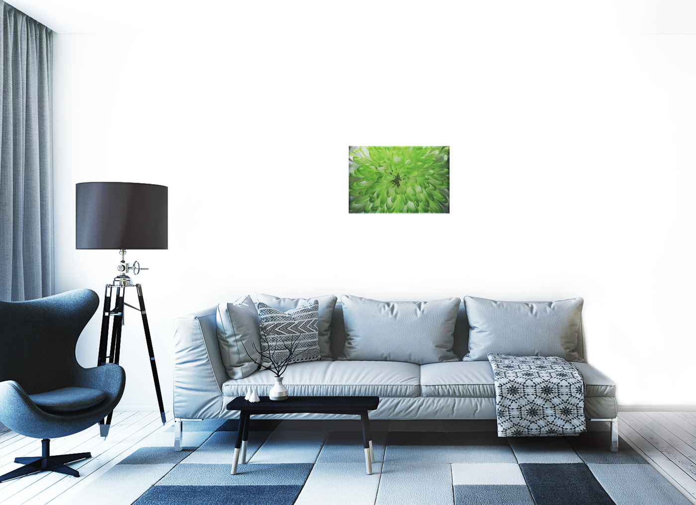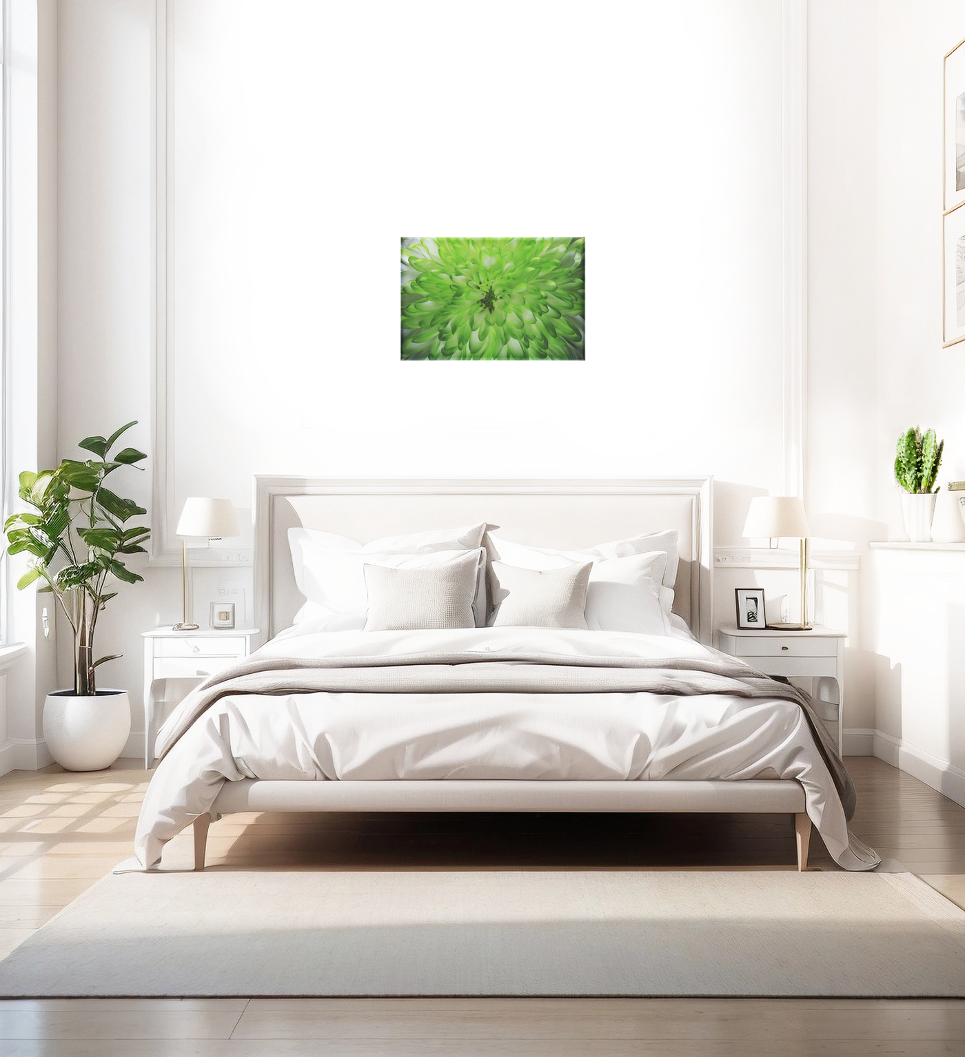Immerse yourself in the lush world of botanicals with this extraordinary Canvas Art print from 101 Canvas Prints. Our expert photography team has captured a mesmerising close-up of a Chrysanthemum flower in an enchanting shade of lime green. This image offers viewers an intimate look at the flower's complex structure, revealing a hypnotic array of petals that seem to unfurl endlessly towards the edges of the frame.