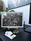 Immerse yourself in the lush world of botanicals with this extraordinary Monochrome Fine Art print from 101 Canvas Prints. Our expert photography team has captured a mesmerising close-up of a Chrysanthemum flower in an enchanting shade of silver. This image offers viewers an intimate look at the flower's complex structure, revealing a hypnotic array of petals that seem to unfurl endlessly towards the edges of the frame.