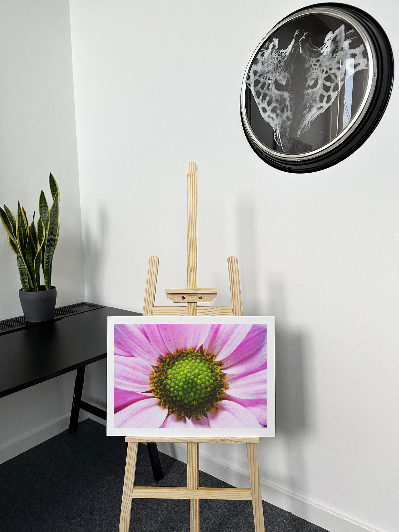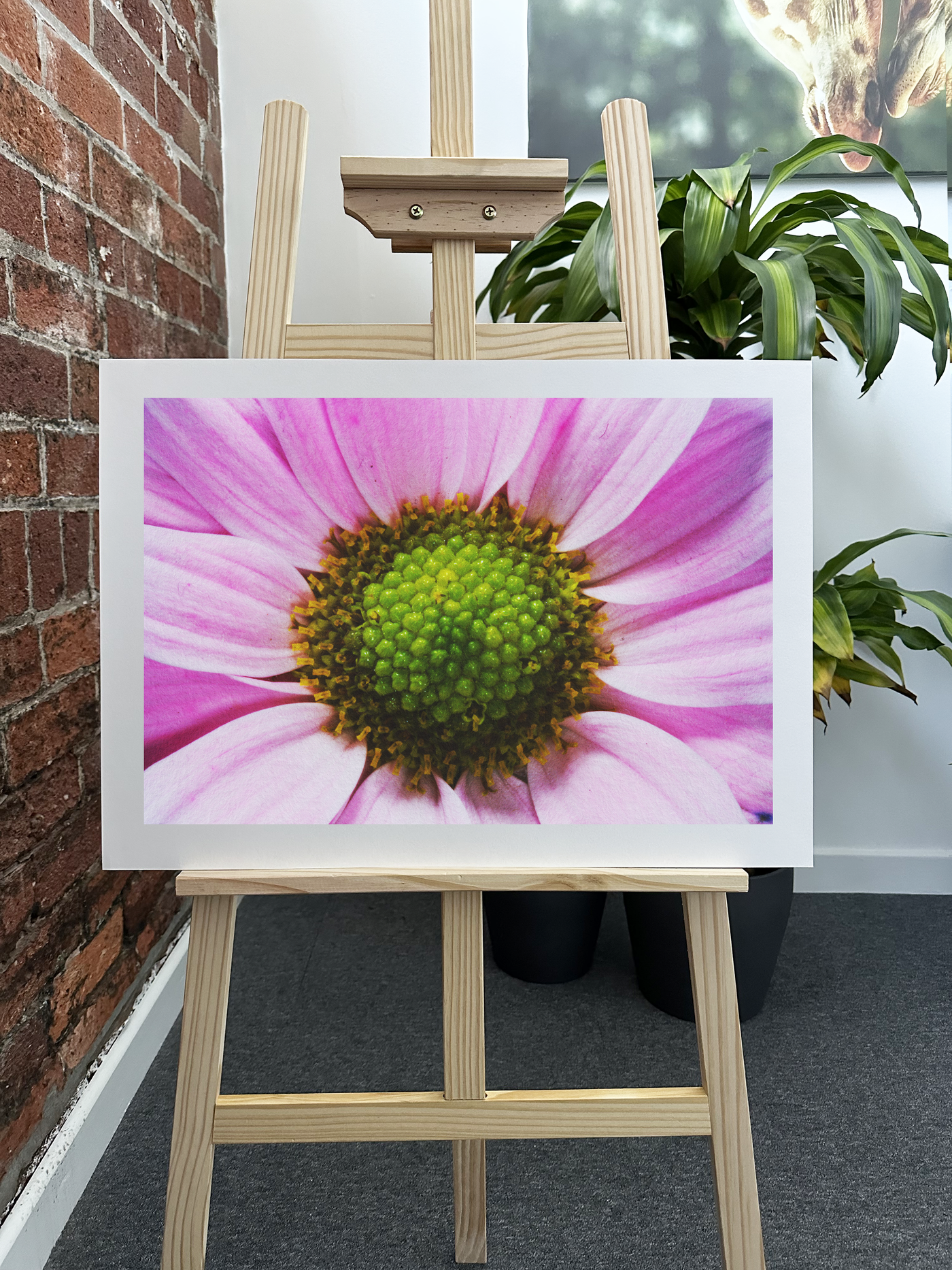 Immerse yourself in the delicate beauty of nature with this exquisite Fine Art print from 101 Canvas Prints. Our skilled photography team has captured a mesmerising close-up of a Daisy, showcasing its soft pink petals and intricate green centre. The image offers viewers an intimate look at the flower's complex structure, revealing details often overlooked by the casual observer.