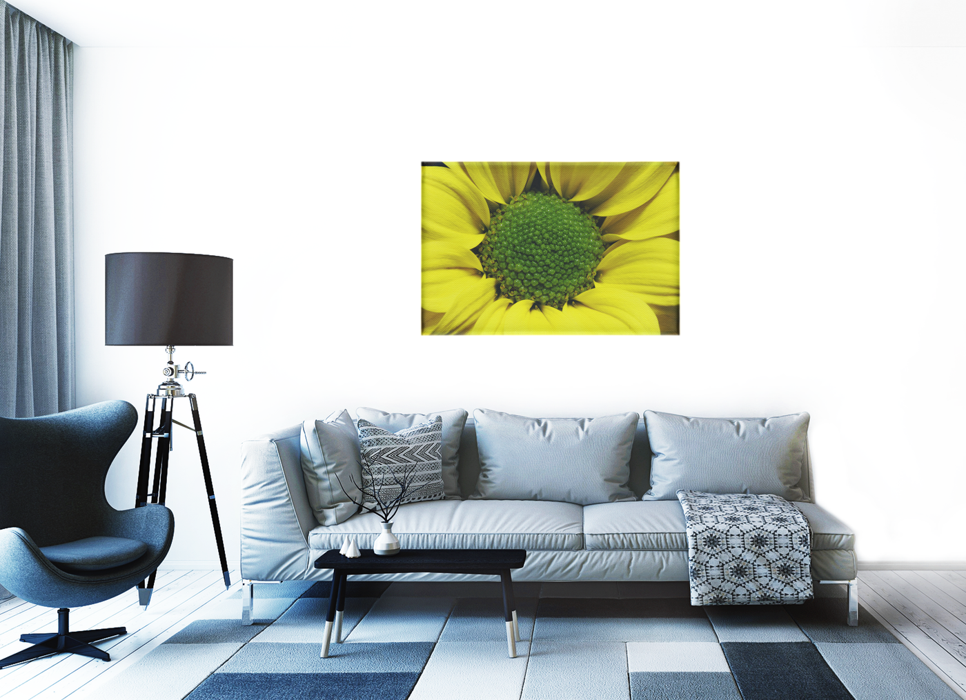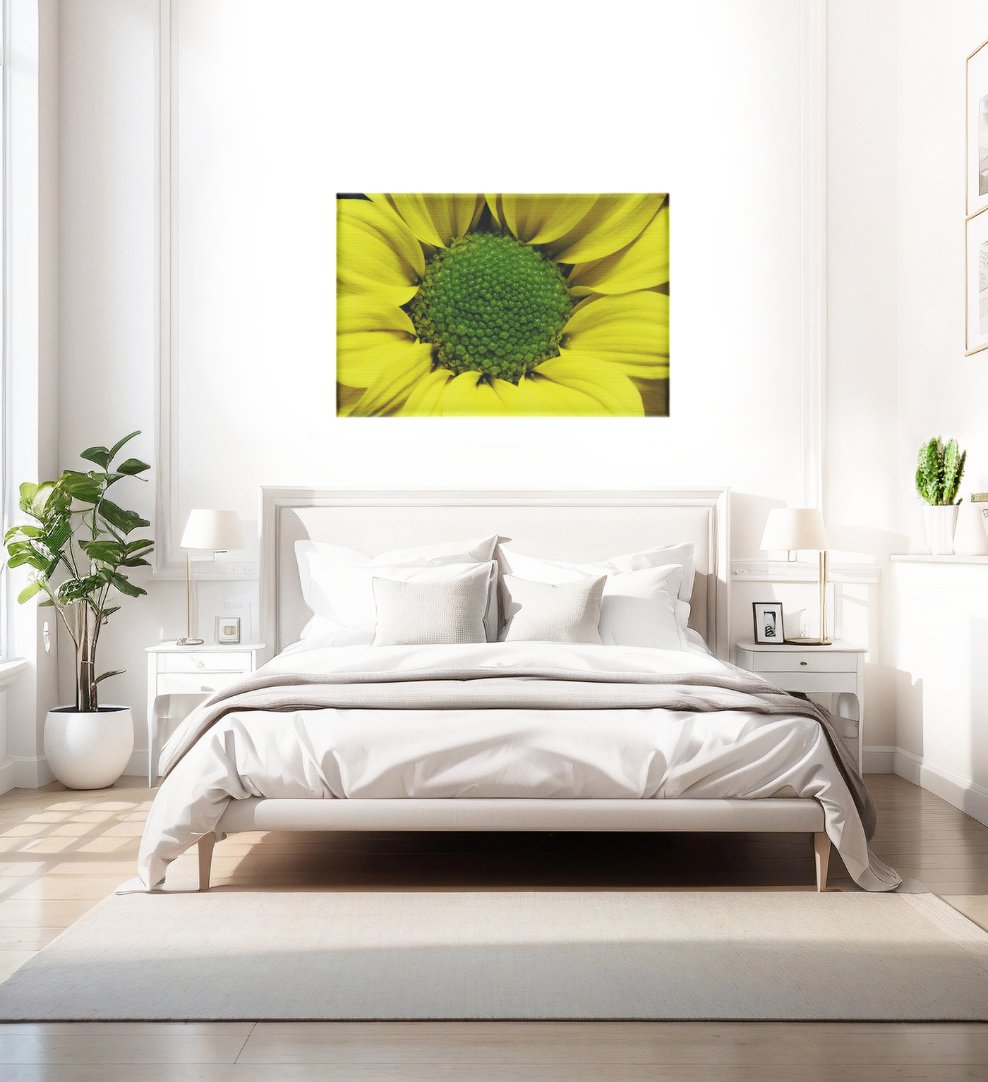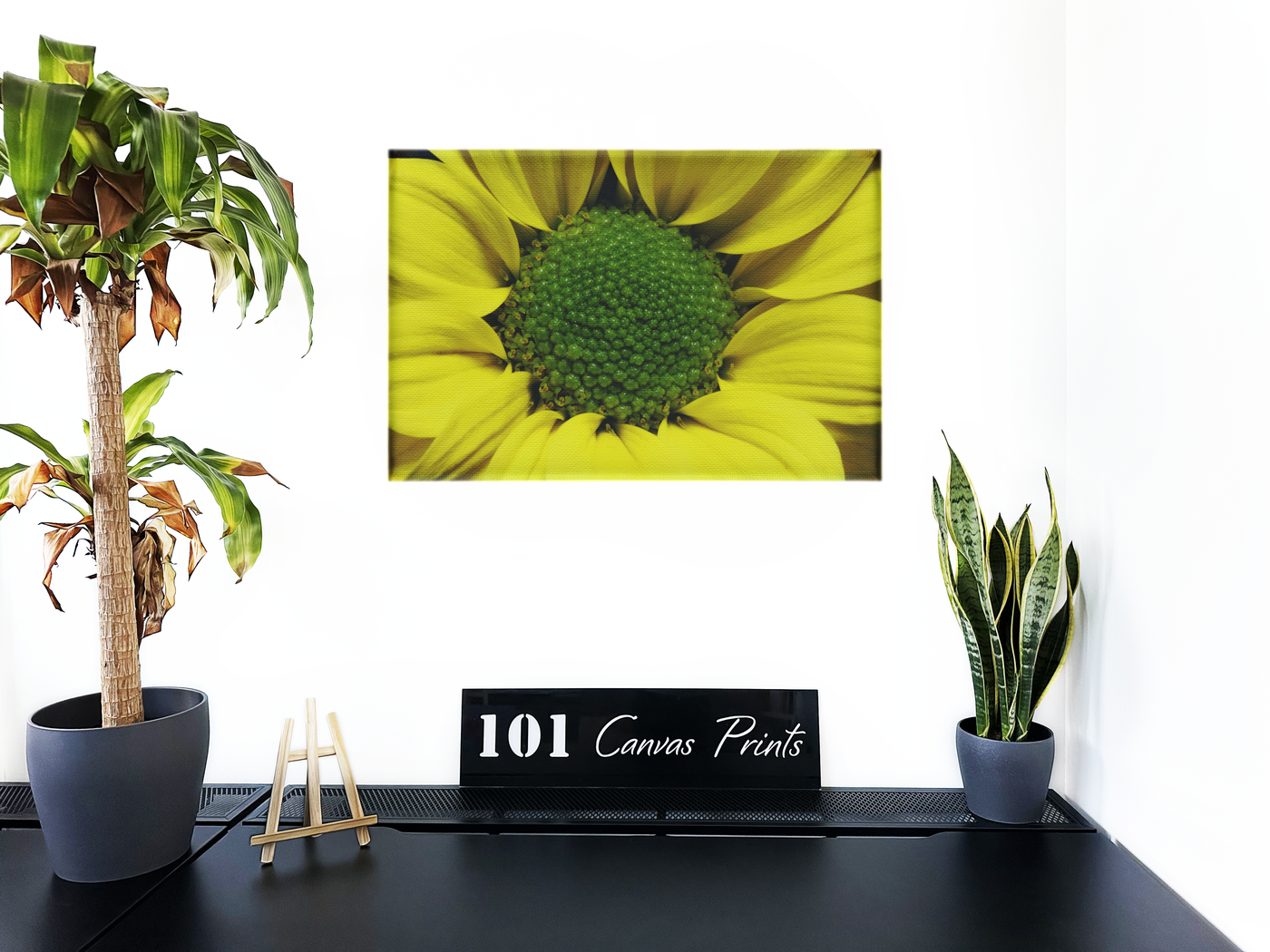 Dive into the heart of nature with this stunning Canvas Art print from 101 Canvas Prints. Our skilled photography team has captured an extraordinarily detailed close-up of a sunflower in full bloom, showcasing the intricate beauty of this beloved flower. The image presents a perfect balance of the vibrant yellow petals surrounding the mesmerising green centre, offering viewers an intimate look at the flower's complex structure.