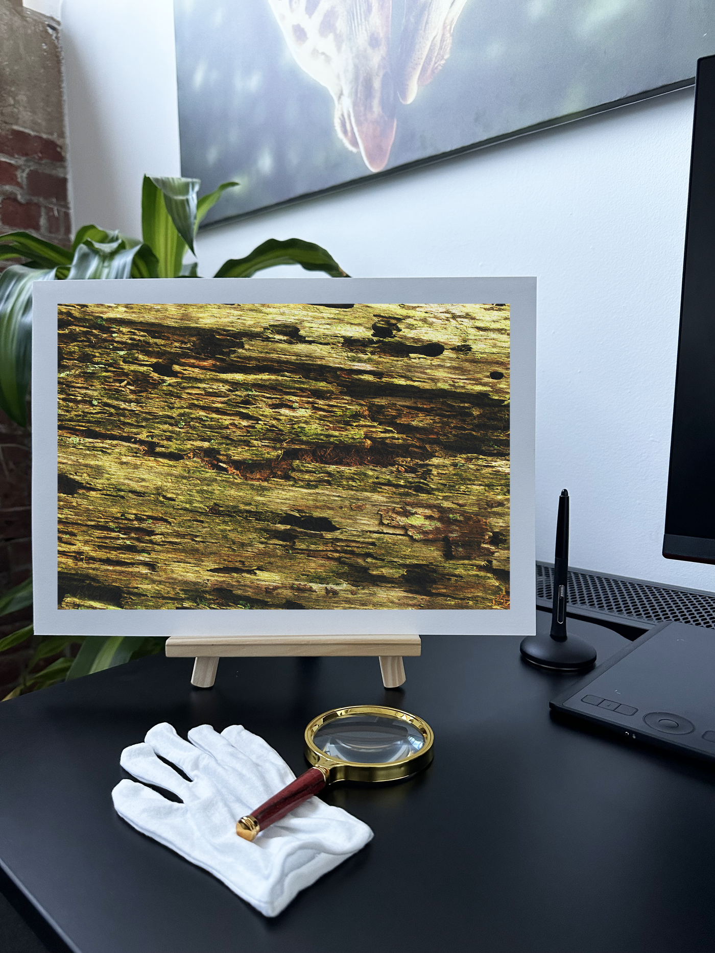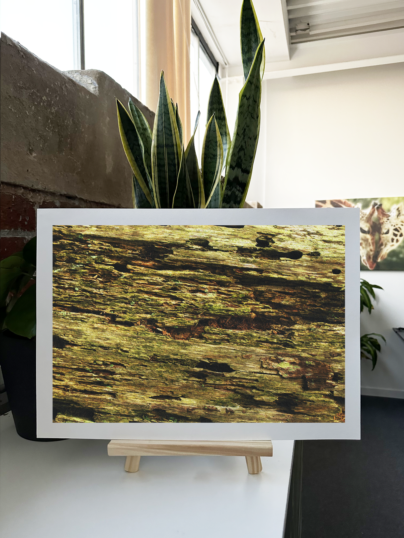 The Fine Art print medium perfectly complements this subject, its own texture echoing the roughness of the wood. The matte finish of the Fine Art paper enhances the natural, organic feel of the image, making it appear almost tactile. This piece would be an excellent addition to a rustic or nature-inspired interior, bringing warmth and character to any space. It could serve as a focal point in a living room, add texture to a minimalist bedroom, or enhance the ambiance of a cosy study.