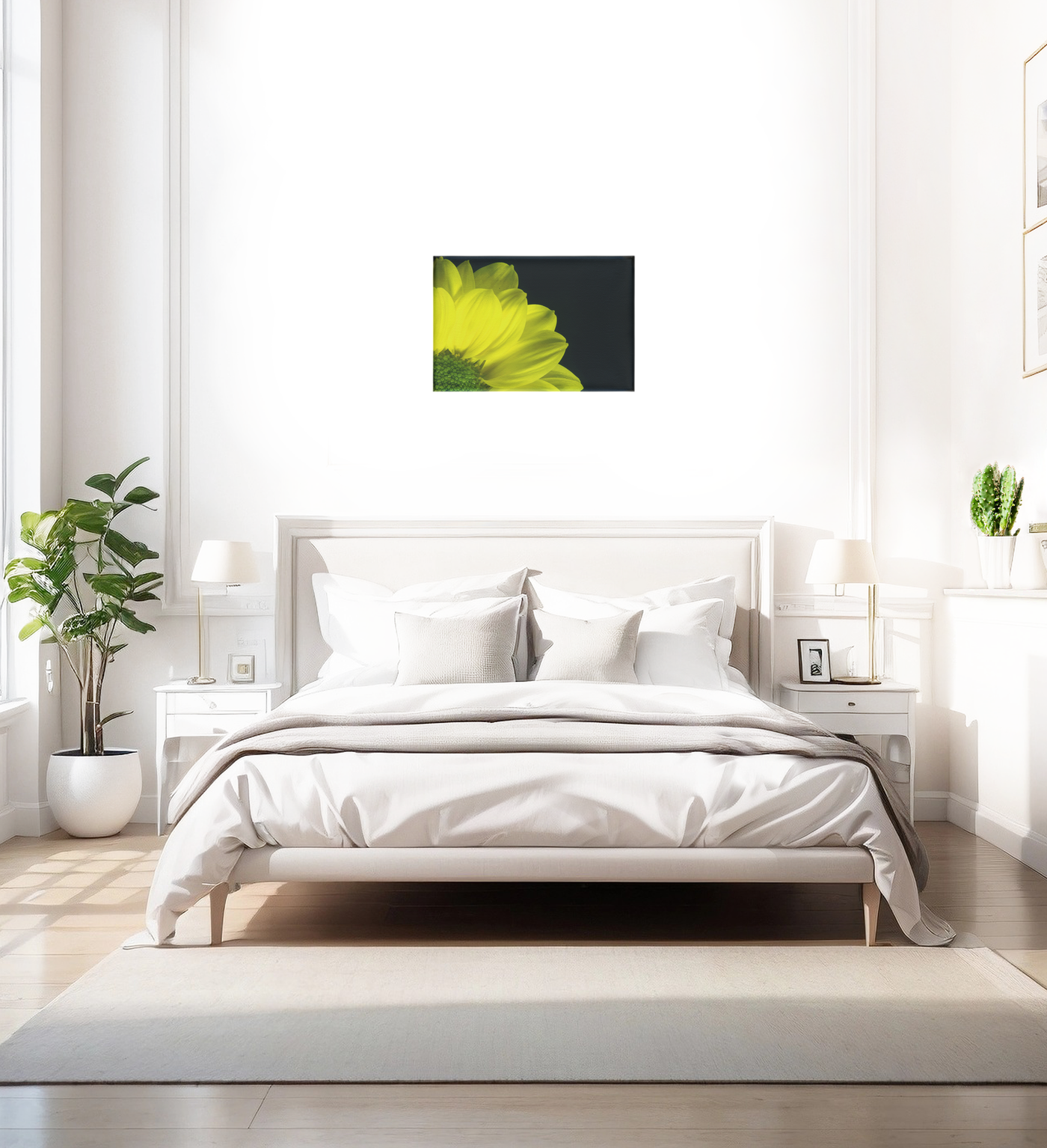 Our premium Canvas material beautifully captures the texture and depth of this image. The slightly matte finish of the Canvas softens the contrast just enough to create a harmonious balance between the vibrant subject and the moody background. This piece would make a striking focal point in any room, bringing a burst of sunshine and artistic flair to your living space or office.