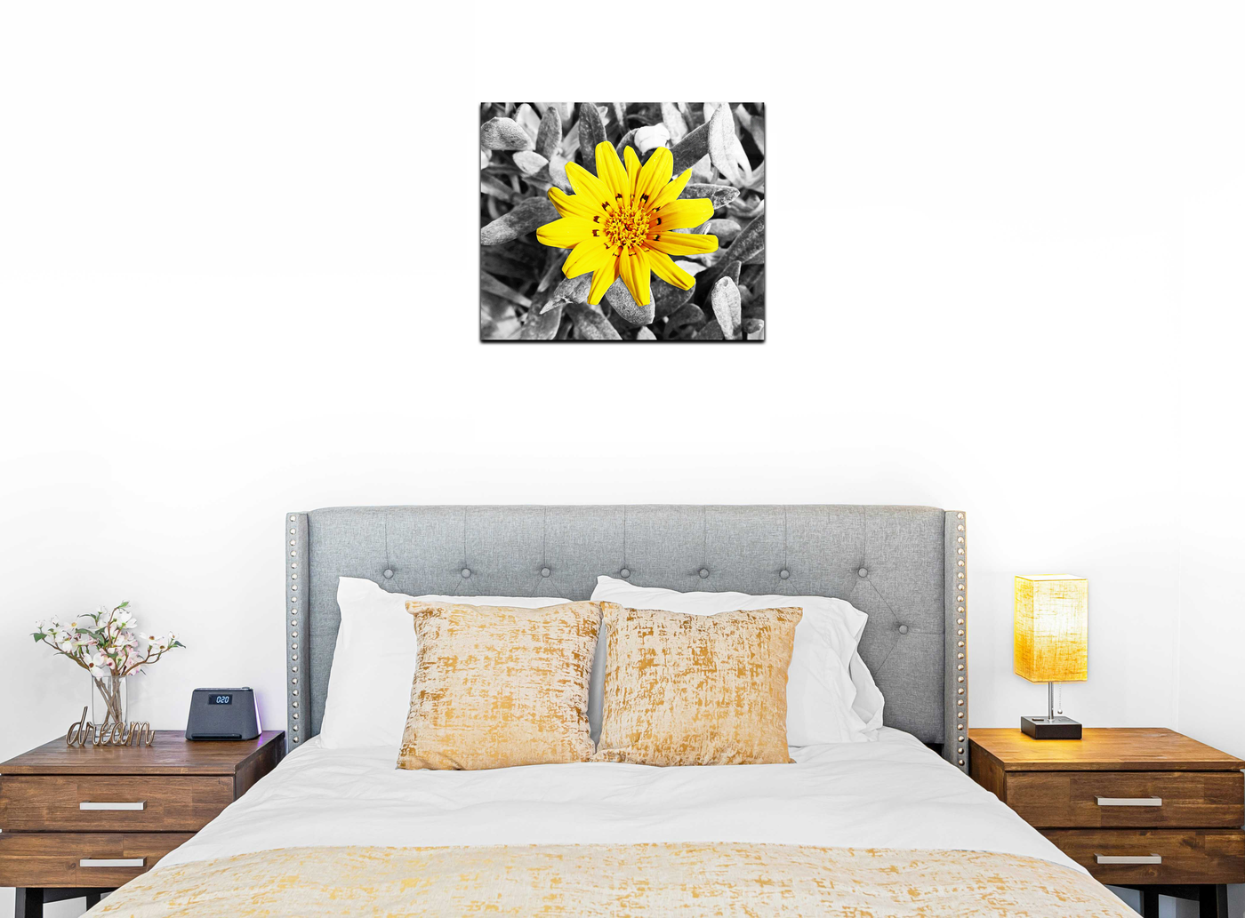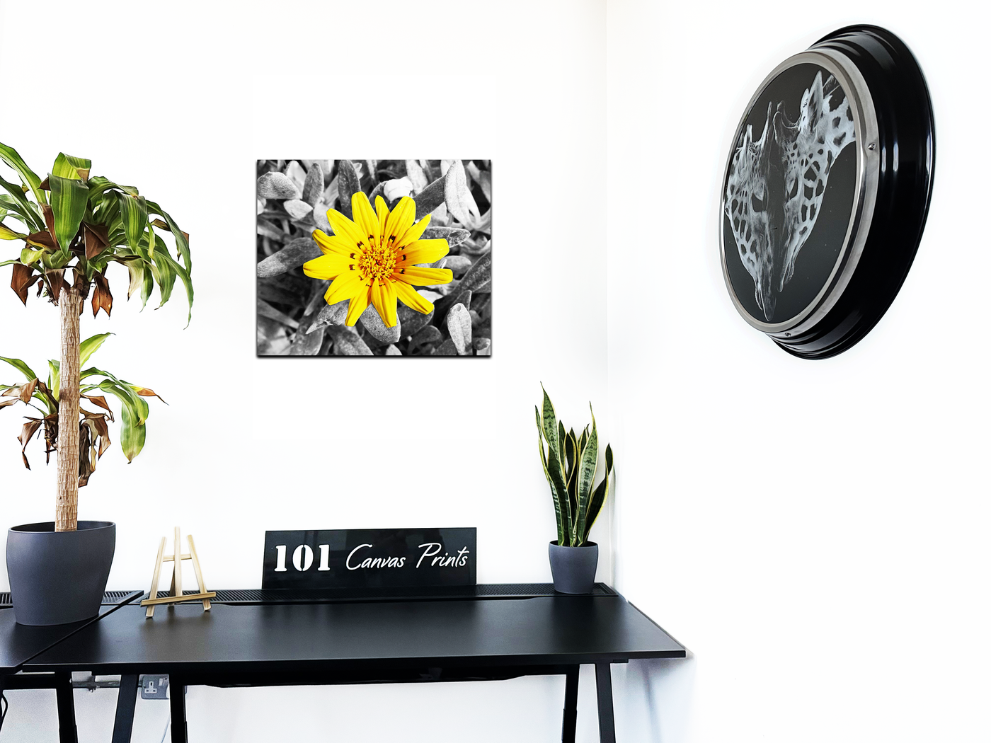 Experience the striking beauty of nature with this captivating Acrylic print from 101 Canvas Prints. Our expert photography team has masterfully captured a yellow flower in full bloom, its petals radiating outwards in a display of natural perfection. The clarity and sharpness of the Acrylic medium bring out every exquisite detail, from the subtle gradations of colour within the petals to the intricate patterns at the flower's heart.