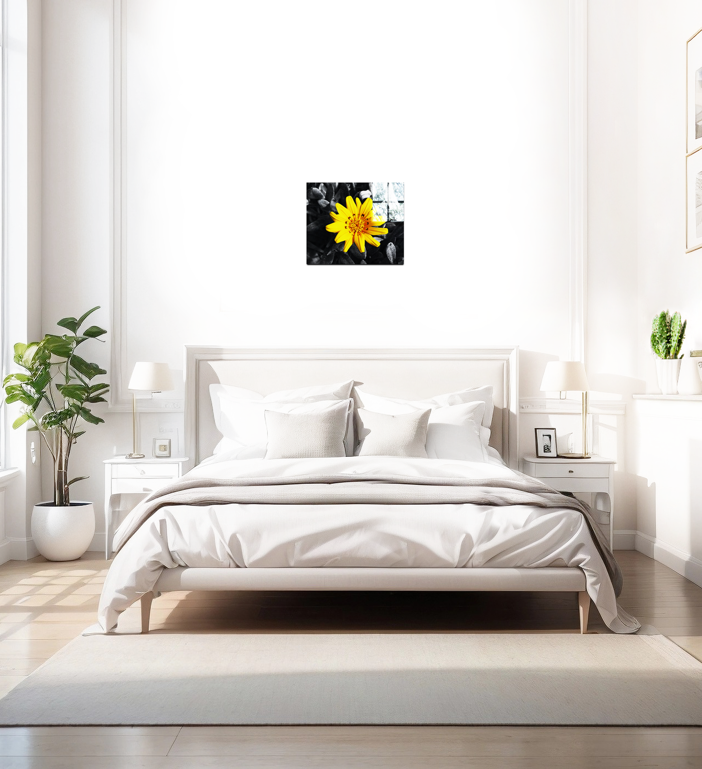 Experience the striking beauty of nature with this captivating Acrylic print from 101 Canvas Prints. Our expert photography team has masterfully captured a yellow flower in full bloom, its petals radiating outwards in a display of natural perfection. The clarity and sharpness of the Acrylic medium bring out every exquisite detail, from the subtle gradations of colour within the petals to the intricate patterns at the flower's heart.