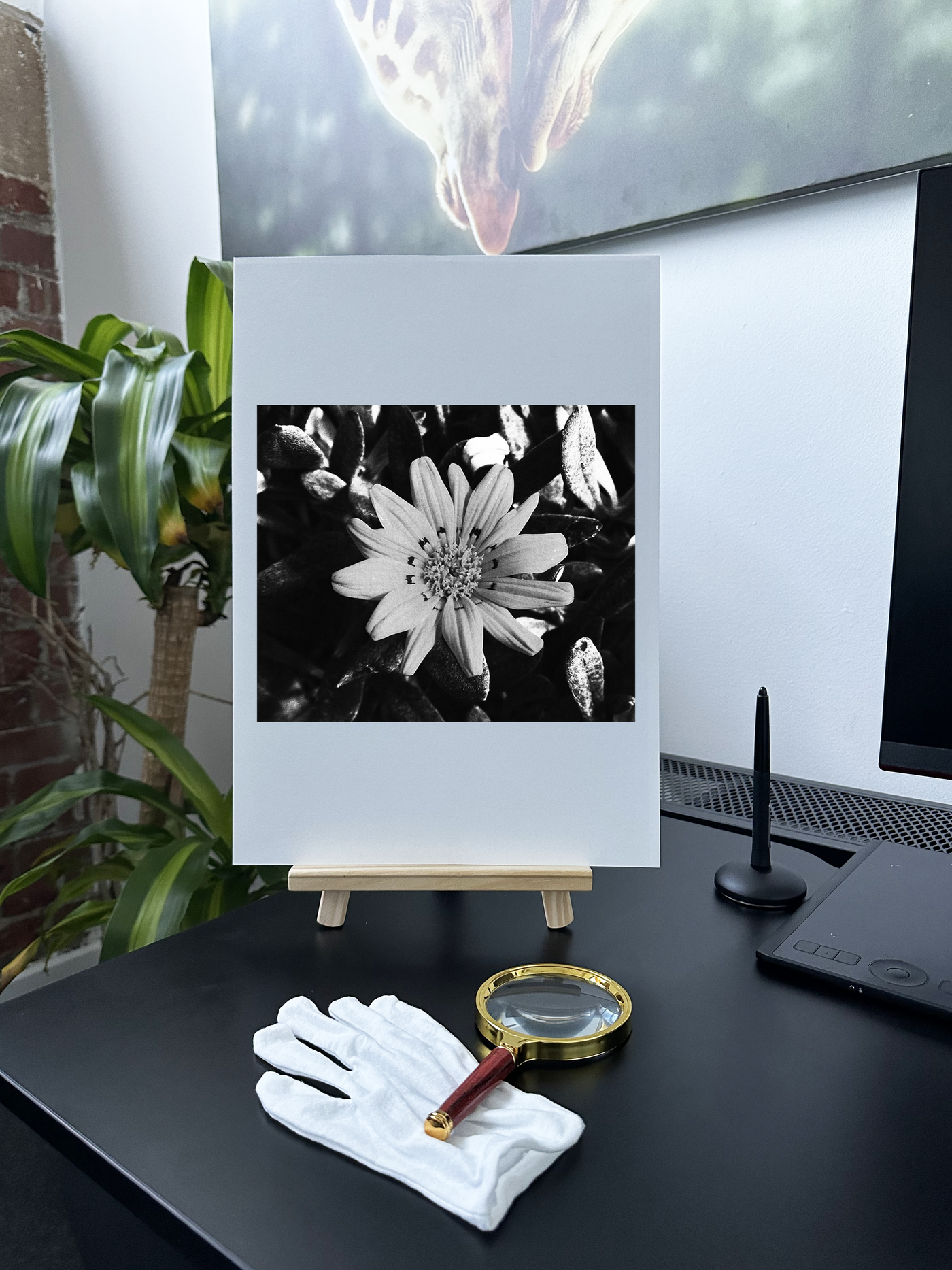 Our carefully handmade monochrome fine art prints are produced on Hahnemühle 308 matte cotton rag paper using Epson archival inks for exceptional detail and color accuracy. Each print features clean, precise edges and a textured surface that brings depth and richness to your chosen artwork, creating a gallery-worthy presentation.